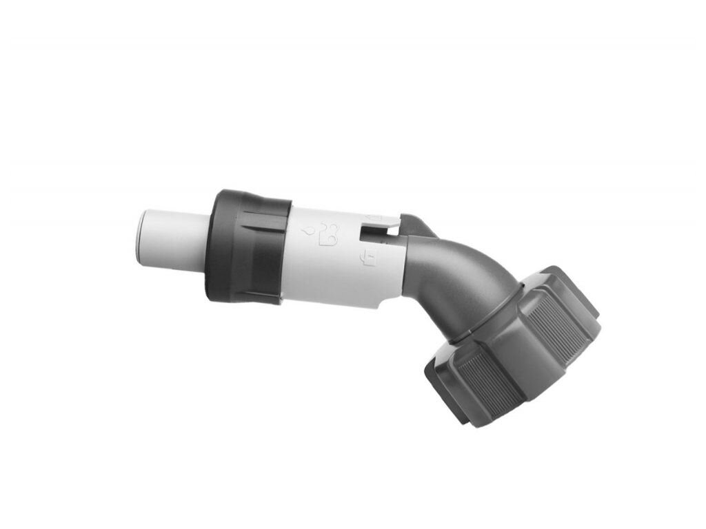 Dysza wlewu oleju HUSQVARNA z optymalnym przepływem i funkcją Autostop do stosowania z kanistrem kombinowanym 5+2,5 l. Dysza jest również wyposażona w blokadę mechaniczną .