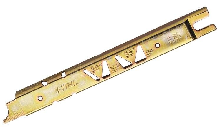 Szablon do ostrzenia STIHL zapewnia doskonały podgląd kątów i odległości podczas ostrzenia piły łańcuchowej . Pomaga to uzyskać najlepsze rezultaty ostrzenia. Opisane otwory pozwalają na precyzyjną kontrolę kąta ostrza i kąta ostrzenia, a jednocześnie na regulację odległości między ogranicznikami głębokości za pomocą końcówki w kształcie litery U. Szablon do ostrzenia można również użyć do sprawdzenia długości zębów łańcucha.
