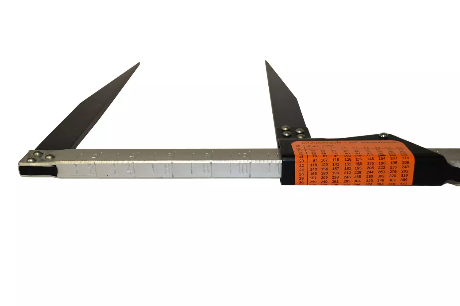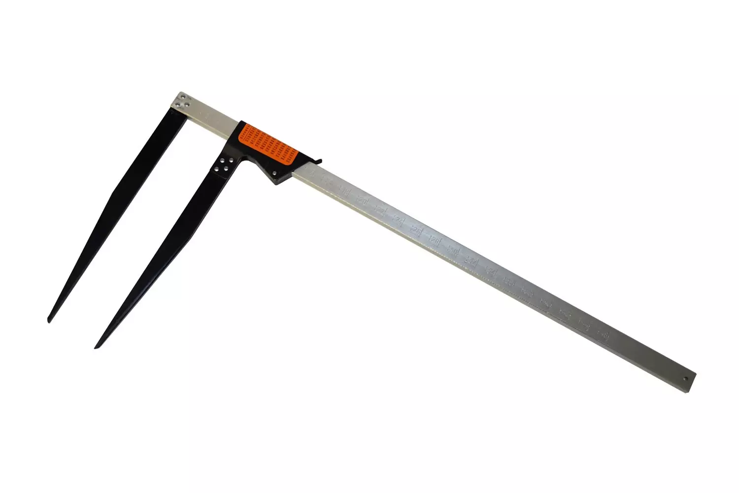 Lekka aluminiowa linijka Husqvarna z podziałką centymetrową z trzech stron. Średnica do 46 cm.