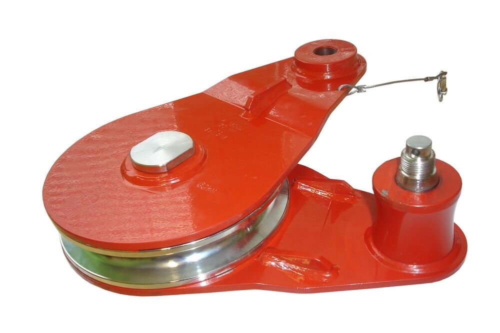 Krążek prowadzący ze stałymi bokami został zaprojektowany specjalnie do ośmiotonowych wciągarek linowych, do transportu drewna i montażu. Krążek stalowy ocynkowany, z łożyskami kulkowymi. Śruba blokująca jest zabezpieczona przed zgubieniem.