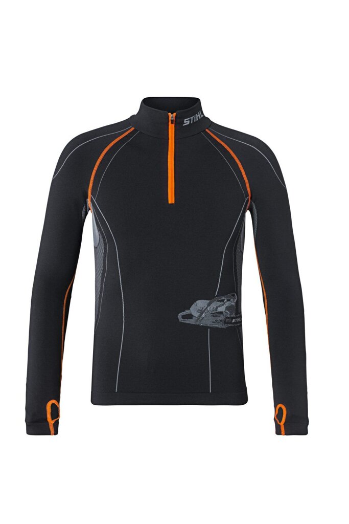 Koszula z długim rękawem STIHL ADVANCE dla profesjonalistów i użytkowników prywatnych jest zapinana na zamek błyskawiczny przy szyi i wyposażona w praktyczne pętelki na kciuki na rękawach. Koszulkę funkcjonalną można nosić również pod innymi ubraniami w chłodne dni, ponieważ materiał zapewnia izolację i szybko schnie.