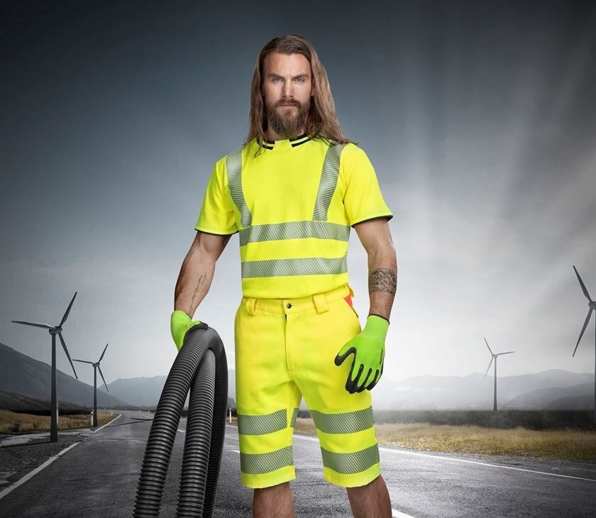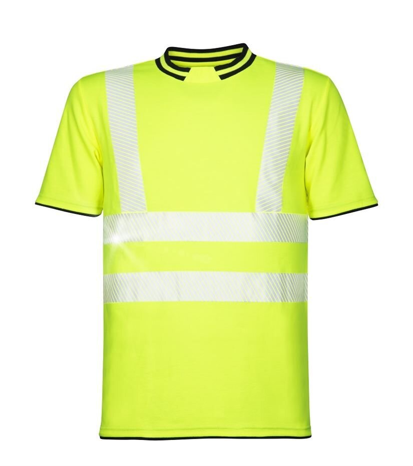 Koszulka o wysokiej widoczności spełnia normę EN 20471 w zakresie doboru materiałów i wykonania i osiąga klasę 2. Jest dostępna w regularnej ofercie odzieży gotowej do noszenia w rozmiarach od S do XXXXL.