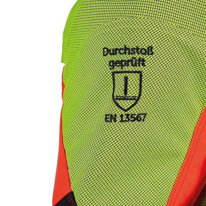 Wysoka widoczność w gęstej roślinności jest zawsze gwarantowana dzięki czerwonym i żółtym obszarom sygnalizacyjnym. Dodatkowe odblaski 3M™ zwiększają widoczność nawet na ruchliwych drogach.