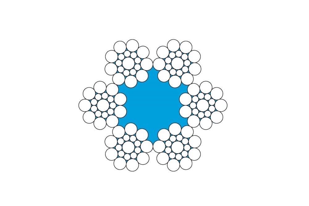 Sześciosplotowa lina stalowa, 6 drutów (1+9+9) z rdzeniem tekstylnym. Lina nawinięta równolegle. Sploty posiadają zewnętrzną warstwę z drutów o większej średnicy. Lina bardzo dobrze znosi obciążenia udarowe i jest odporna na ścieranie. ČSN 02 4340, DIN 3058