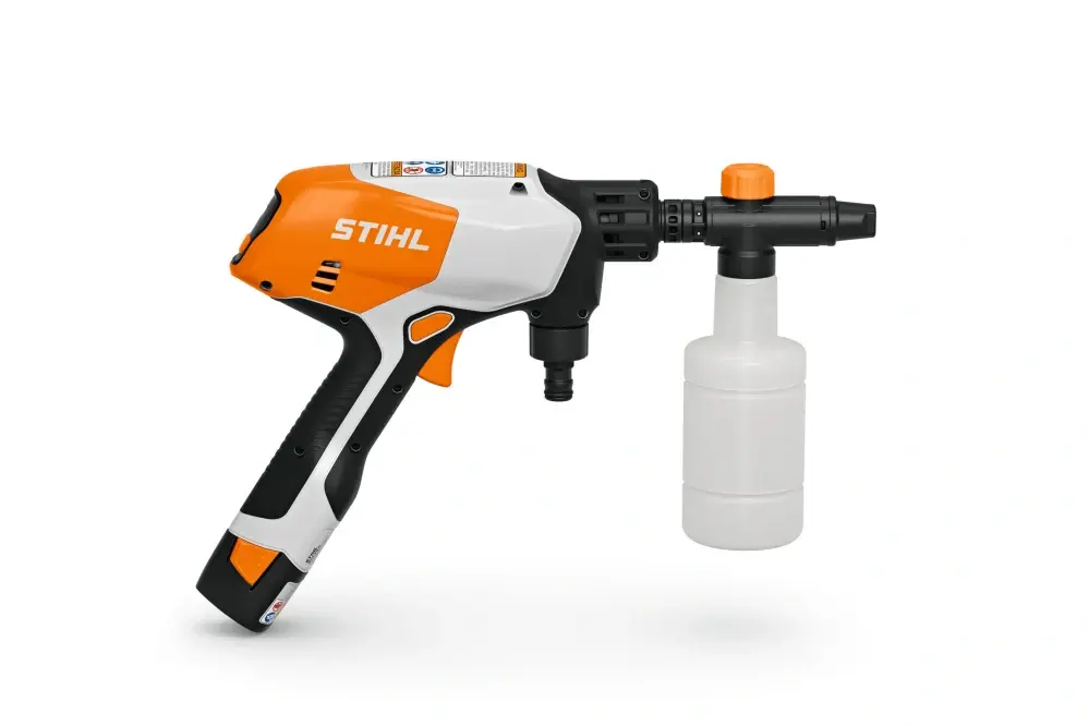 Myjka wysokociśnieniowa STIHL RCA 20 zasilana akumulatorem to kompaktowe i lekkie urządzenie. Nadaje się do drobnych prac porządkowych w domu, ale także do elastycznego użytkowania w dowolnym miejscu. Działa z akumulatorami litowo-jonowymi systemu STIHL AS. STIHL RCA 20 może pracować całkowicie autonomicznie, bez konieczności podłączenia do sieci wodociągowej lub elektrycznej. Jeśli nie masz dostępu do przyłącza wodnego w pobliżu, możesz pompować wodę, na przykład z deszczówki za pomocą węża ssącego lub skorzystać ze składanego pojemnika na wodę dołączonego do urządzenia.