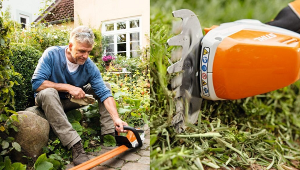 STIHL HSA 26 SET – Absolutní bestseller pro precizní střih. Tyto lehké aku nůžky jsou v setu s výměnnými noži na trávu i keře, což z nich dělá ideální nástroj pro začišťování trvalek i okrajů trávníku.