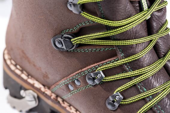 Wytrzymała szwajcarska skóra Juchten o grubości 4-5 mm jest wodoodporna, paroszczelna i praktycznie niezniszczalna.