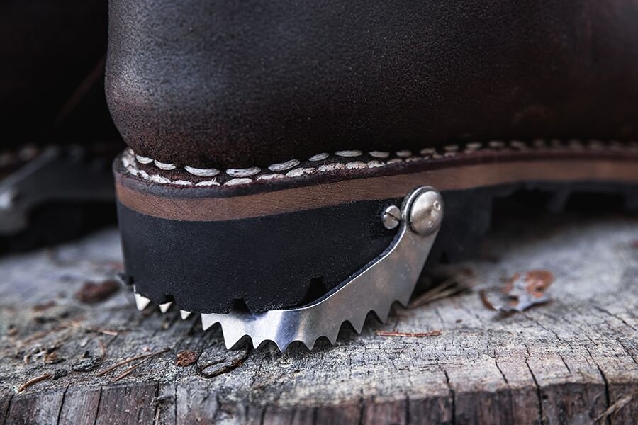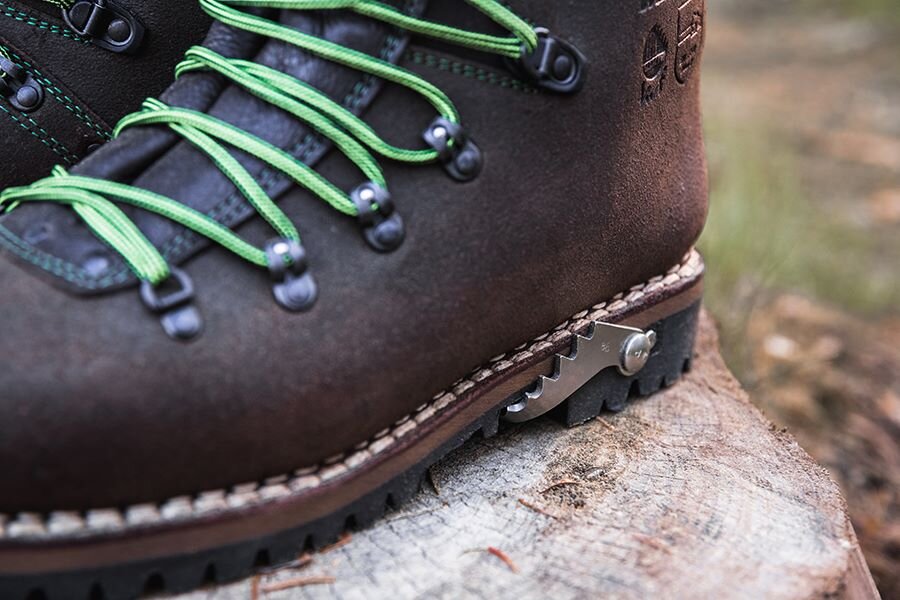 Amortyzująca podeszwa ma składaną piętę, która zapewnia lepszą stabilność na stromym terenie lub oblodzonym drewnie.