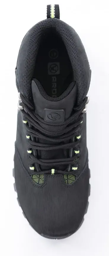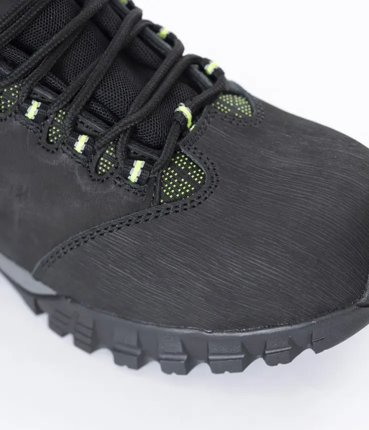 - trzewiki ochronne z cholewką wykonaną ze szczotkowanej skóry bydlęcej NUBUK i materiału tekstylnego, z powłoką hydrofobową