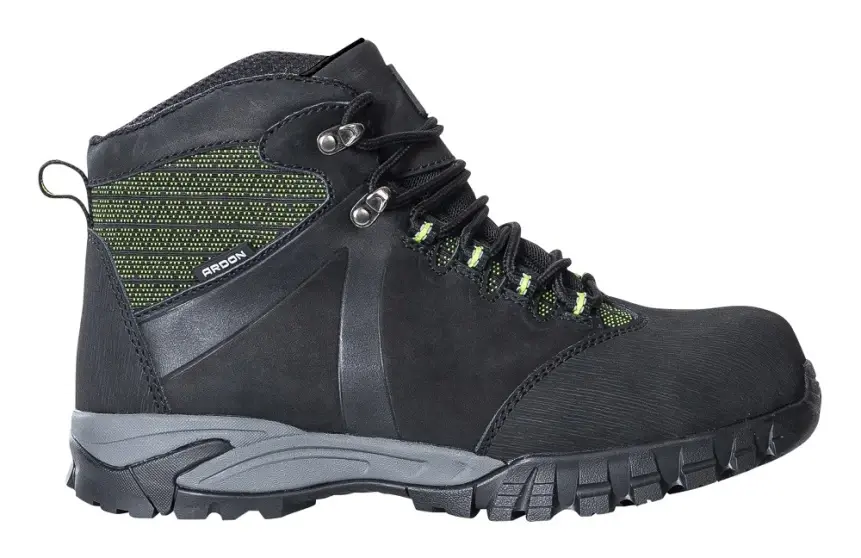 - Bezpieczeństwo pracy zapewniają kompozytowe noski i elastyczna wkładka kevlarowa zabezpieczająca przed przebiciem