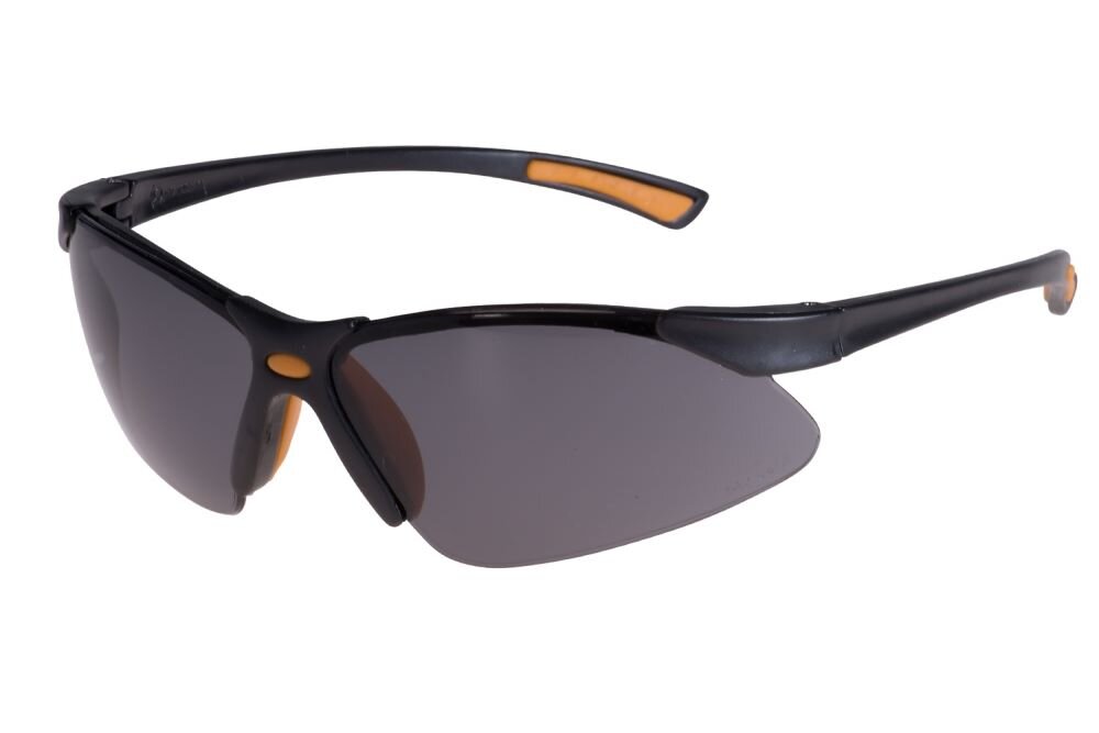 Okulary ochronne z ochroną boczną, utwardzonymi szkłami, odporne na działanie substancji chemicznych i zarysowania.