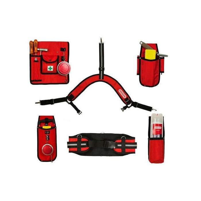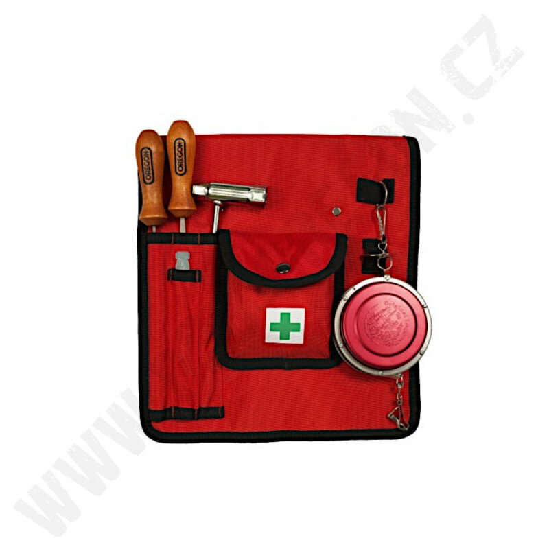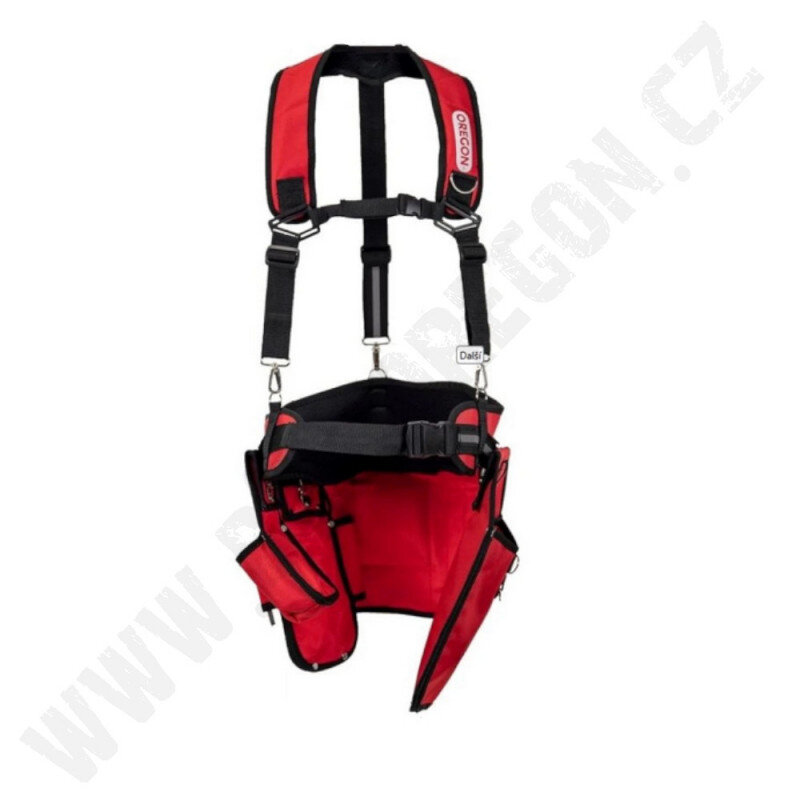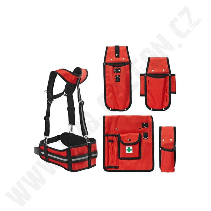 - 3. Pouzdro pro držák pilníku, plochý pilník, lékárničku a lesnické pásmo, které umožňuje mít všechny tyto důležité nástroje přehledně a pohodlně po ruce.