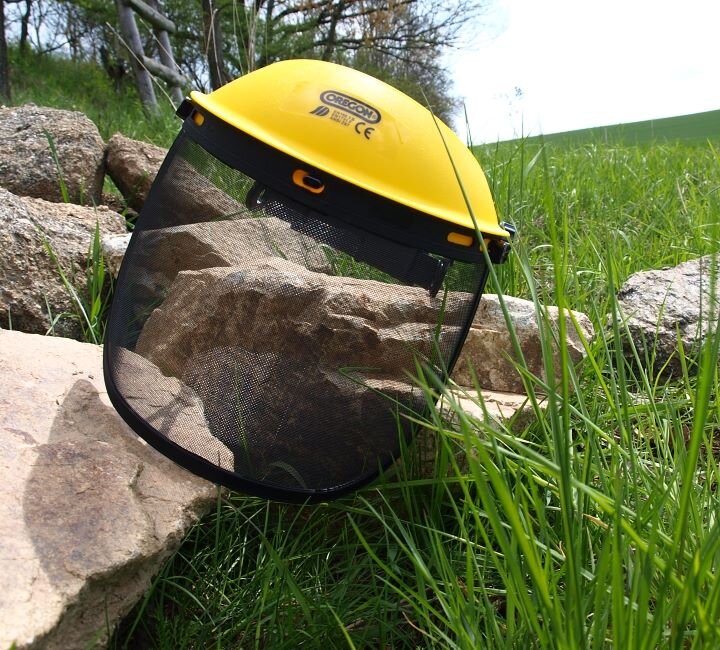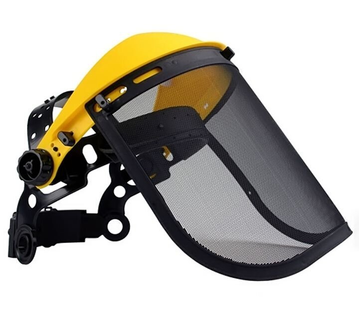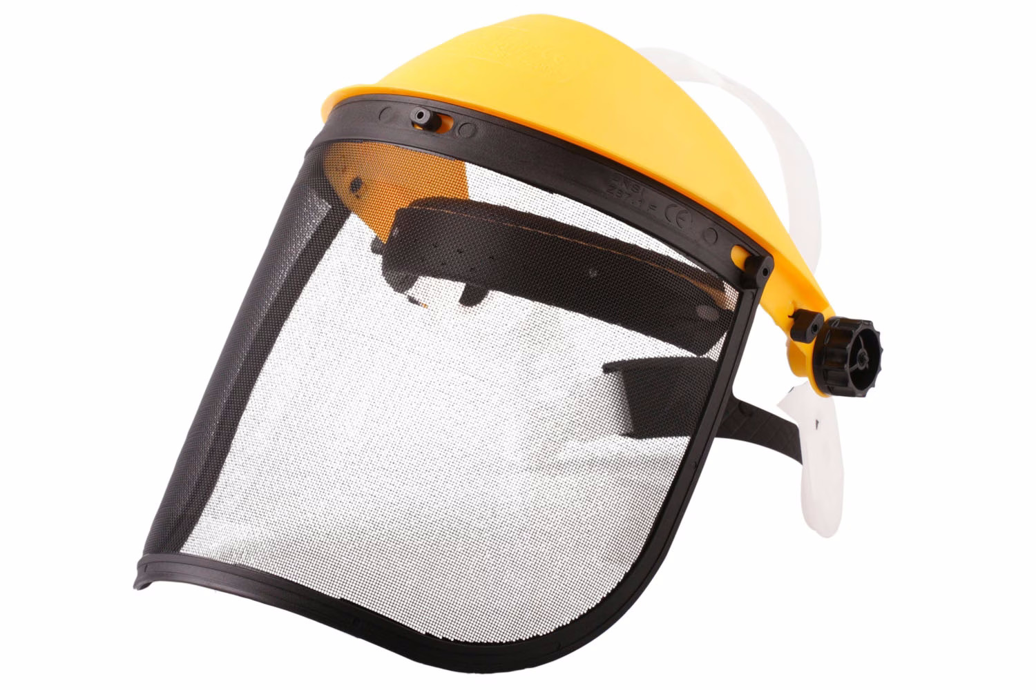 Osłona ochronna dla operatorów kos spalinowych (siatka metalowa). Nakrycie głowy z regulacją w jednym punkcie.