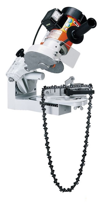 Obrotowy wspornik łańcucha Oilomatic z 2 profilowanymi tarczami szlifierskimi