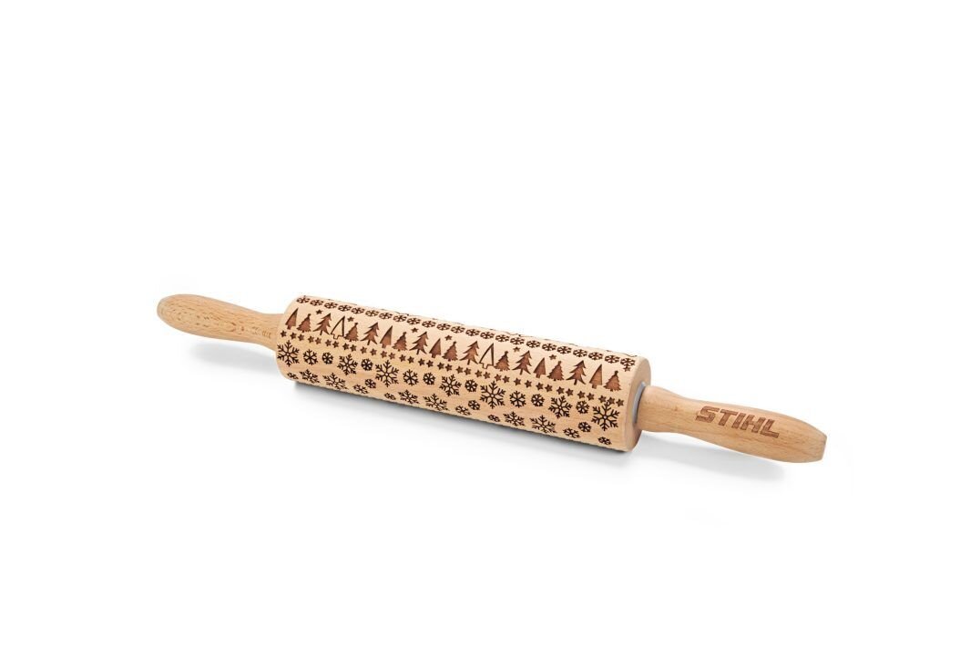 Święta Bożego Narodzenia nie byłyby możliwe bez pilarek łańcuchowych STIHL. A ponieważ STIHL tak bardzo kocha drewno, w kolekcji świątecznej znalazł się teraz również wałek do ciasta z wytłoczonym wzorem piły łańcuchowej.