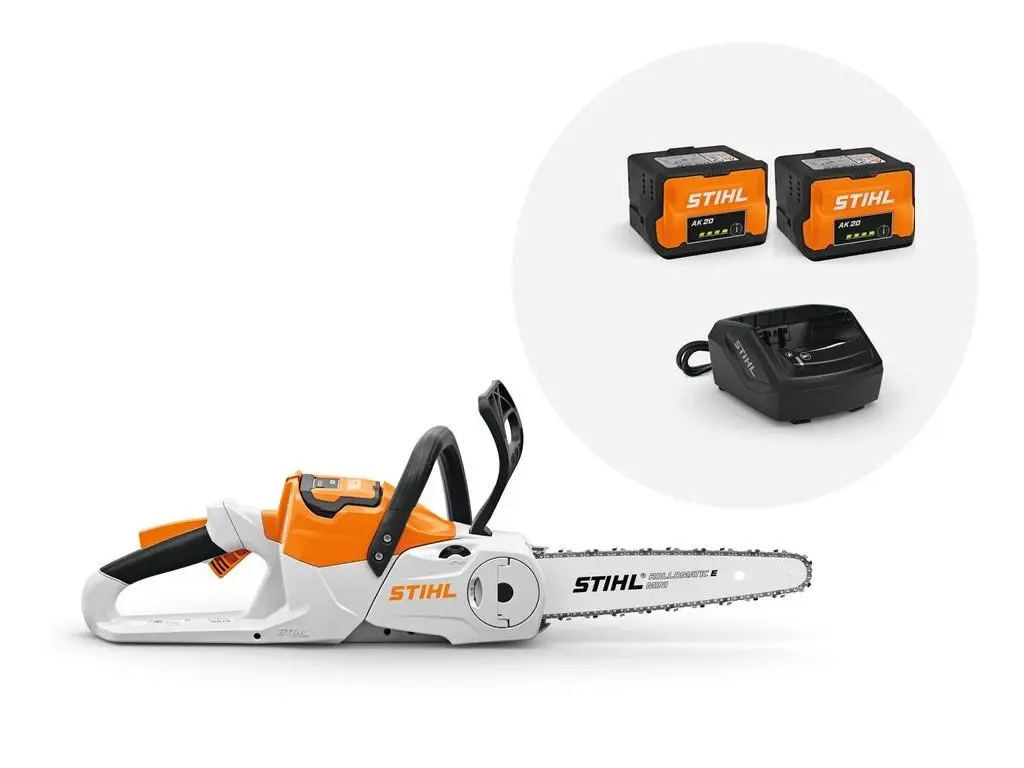 Jeśli chcesz używać akumulatorowej pilarki łańcuchowej STIHL MSA 60 CB do prac w ogrodzie, konserwacji domu lub rękodzielnictwa i nie posiadasz jeszcze akumulatora i ładowarki systemu STIHL AK, ten zestaw będzie idealnym wyborem. Uniwersalna pilarka łańcuchowa MSA 60 CB jest dostarczana z 2 akumulatorami litowo-jonowymi STIHL AK 20 oraz standardową ładowarką STIHL AL 101. Lekka pilarka łańcuchowa MSA 60 CB umożliwia łatwe ścinanie gałęzi drzew i krzewów, a także ścinanie i obróbkę leżącego drewna. Ta pilarka łańcuchowa jest tak cicha, że można jej używać bez ochronników słuchu, nawet w obszarach wrażliwych na hałas, takich jak osiedla mieszkaniowe. Dzięki pracy bezemisyjnej możesz pracować również w pomieszczeniach.