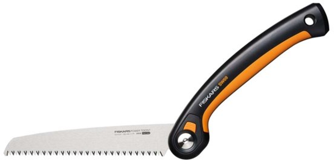 Składana piła Fiskars Plus™ SW69 (21 cm) ma trzy pozycje cięcia z blokadą ostrza, co pozwala na wykonanie każdego cięcia pod optymalnym kątem. Ostrze Power Tooth ma potrójnie szlifowane, niezwykle ostre zęby, zapewniające szybkie i czyste cięcia. Można je bezpiecznie zablokować w pozycjach podcięcia, prostej i pistoletowej, a także w pozycji złożonej, co zapewnia bezpieczne przechowywanie i transport. Idealnie czyste cięcie uzyskuje się w 3 prostych krokach. Najpierw przetnij korę od spodu gałęzi, używając pozycji podcięcia. Następnie, używając prostej lub pistoletowej rękojeści dla większej dźwigni, utnij gałąź kilka centymetrów od początkowego podcięcia. Na koniec utnij pozostałą część gałęzi między pniem a podcięciem. Ergonomiczna rękojeść piły posiada punkty SoftGrip™ zapewniające wygodny, antypoślizgowy chwyt, a łatwa wymiana ostrzy gwarantuje, że piła będzie służyć przez wiele sezonów.