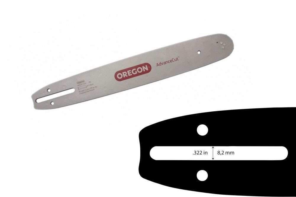 Prowadnica do pilarki łańcuchowej OREGON PRO-AM. Długość 40 cm (16"), szerokość rowka 1,3 mm, podziałka 0,3/8". Łańcuch 56/57 ogniw.