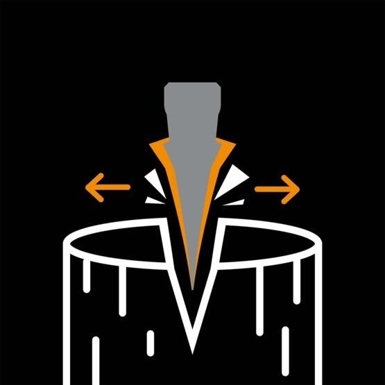 - Nová vylepšená konstrukce čepele; tenké, široké ostří zajišťuje čisté a snadné štípání čerstvého, pryskyřičnatého dřeva, jako je smrk a borovice