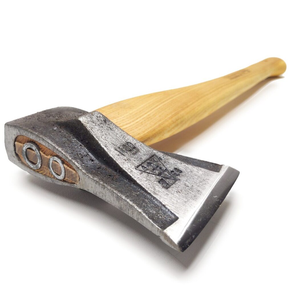 Siekiera kuta ręcznie z trzonkiem jesionowym 60 cm, specjalnie ukształtowane ostrze w kształcie klina rozłupującego