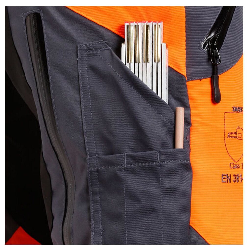 Kevlar w najbardziej narażonych na przetarcia miejscach, na kolanach i po wewnętrznej stronie nogawek, gwarantuje długą żywotność. Membrana RainTex® X-treme Air zapewnia absolutną ochronę przed wilgocią. Spodnie odporne na przecięcia posiadają certyfikat EN 381-5 i są klasyfikowane w klasie 1 - 20 m/s. Nawet narzędzia zawsze mają swoje miejsce dzięki kieszeni z przegródkami na średnicomierz i klucz. Dla komfortu noszenia i cyrkulacji powietrza spodnie X-treme Air posiadają podszewkę z siatki.