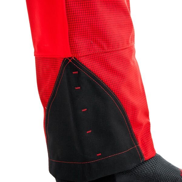 Spodnie te zostały zaprojektowane przede wszystkim do użytku w najbardziej wymagających i ekstremalnych warunkach spotykanych podczas wycinki drzew i pracy w środowisku leśnym. Zaprojektowano je z myślą o maksymalnej ochronie i komforcie użytkownika podczas pracy w lesie. Dolna część nogawek wyposażona jest w odpinane wewnętrzne mankiety, których główną funkcją jest zapobieganie przedostawaniu się brudu, drobnych kamieni lub owadów do butów, a jednocześnie utrzymanie stóp suchych i komfortowych podczas wymagających prac. Mankiety te są bezpiecznie przymocowane do butów za pomocą elastycznej gumy lub alternatywnie wyposażone w praktyczny haczyk, który można przymocować do sznurowadła. Jeśli użytkownik preferuje inny sposób zapięcia, mankiety można po prostu odpiąć - są one mocowane wewnątrz nogawek za pomocą zamka błyskawicznego, co zapewnia łatwą i szybką obsługę.