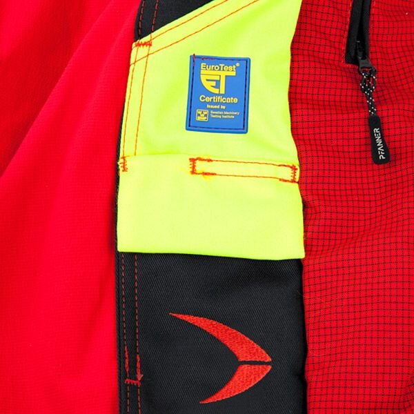 Spodnie spełniają wymagania klasy ochrony przed przecięciem 1 według normy EN 381, co potwierdza wysoki poziom bezpieczeństwa podczas pracy piłą i innymi ostrymi narzędziami.