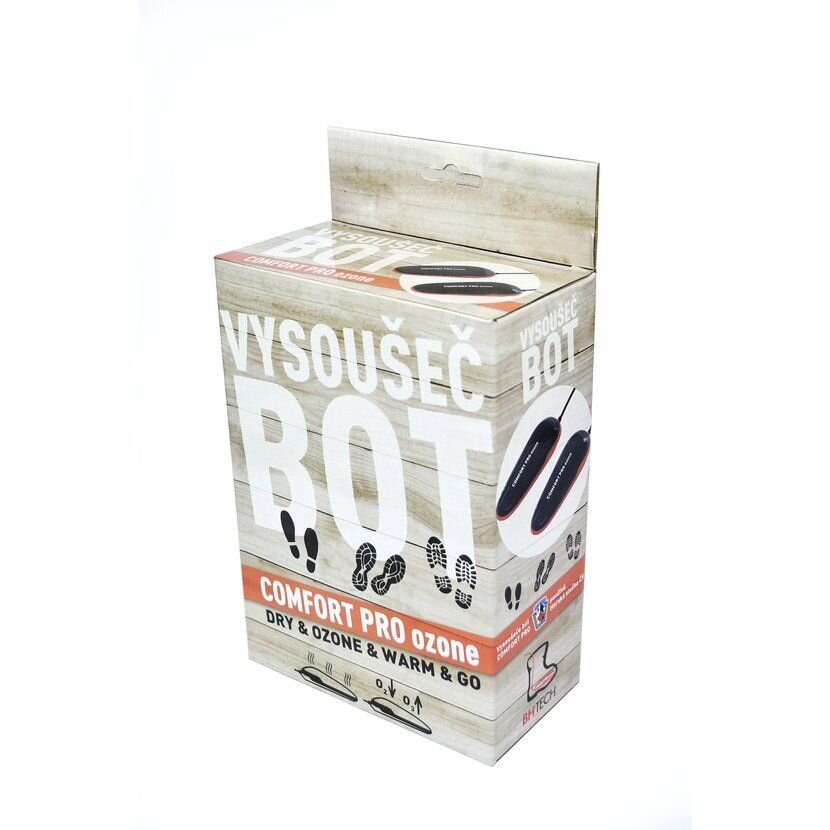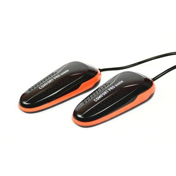 Suszarka ozonowa Comfort PRO nadaje się do wszystkich rodzajów obuwia (nart, butów snowboardowych, łyżew, butów trekkingowych, butów roboczych itp.) oraz rękawic. Można jej również używać do ich wstępnego podgrzewania. Oprócz suszenia, urządzenie może również dezynfekować i usuwać zapachy! Dzięki przełączanej funkcji wytwarzania aktywnego tlenu – ozonu, niszczy bakterie i zarodniki pleśni. Zoptymalizowany kształt z otworami zapewnia idealną cyrkulację powietrza w temperaturze do 45°C. Suszarka jest delikatna dla obuwia, a czas suszenia wynosi około 4-5 godzin w zależności od wilgotności powietrza. Bezpieczne działanie urządzenia zapewnia zabezpieczenie przed przegrzaniem. Urządzenie składa się z dwóch elementów grzejnych o mocy 10 W, każdy o wymiarach 16 x 6 x 3,5 cm. Całkowita długość kabla zasilającego wynosi 135 cm (pojedynczy kabel 90 cm + 45 cm na każdy element grzejny).