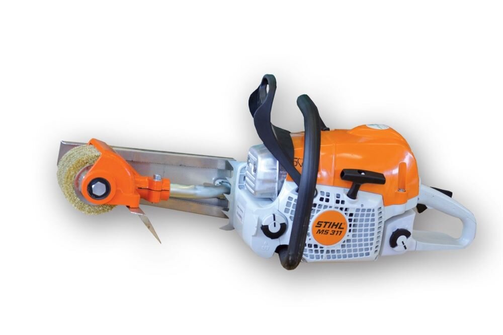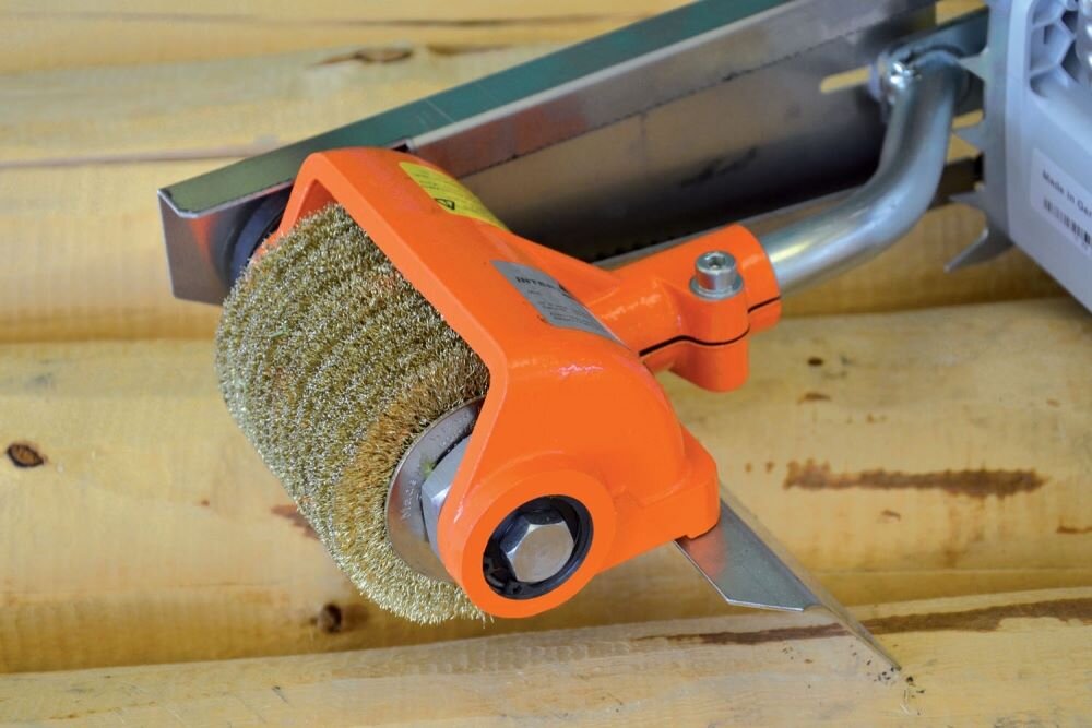 Szczotka druciana 117SP do usuwania starej farby, rdzy lub betonu z szalunków. Czyszczenie i polerowanie metalu. Ze względu na wysoką wydajność usuwania, może być również stosowana do strukturyzacji drewna. Dostarczamy ją do profesjonalnych pilarek łańcuchowych Husqvarna i Stihl o pojemności silnika od 50 cm3. Szerokość cięcia 115 mm. Można jej również używać w pilarce elektrycznej Stihl E220. Podczas montażu należy uwzględnić modyfikację osłony łańcucha w niektórych modelach pilarek (zeszlifowanie części trzonka).