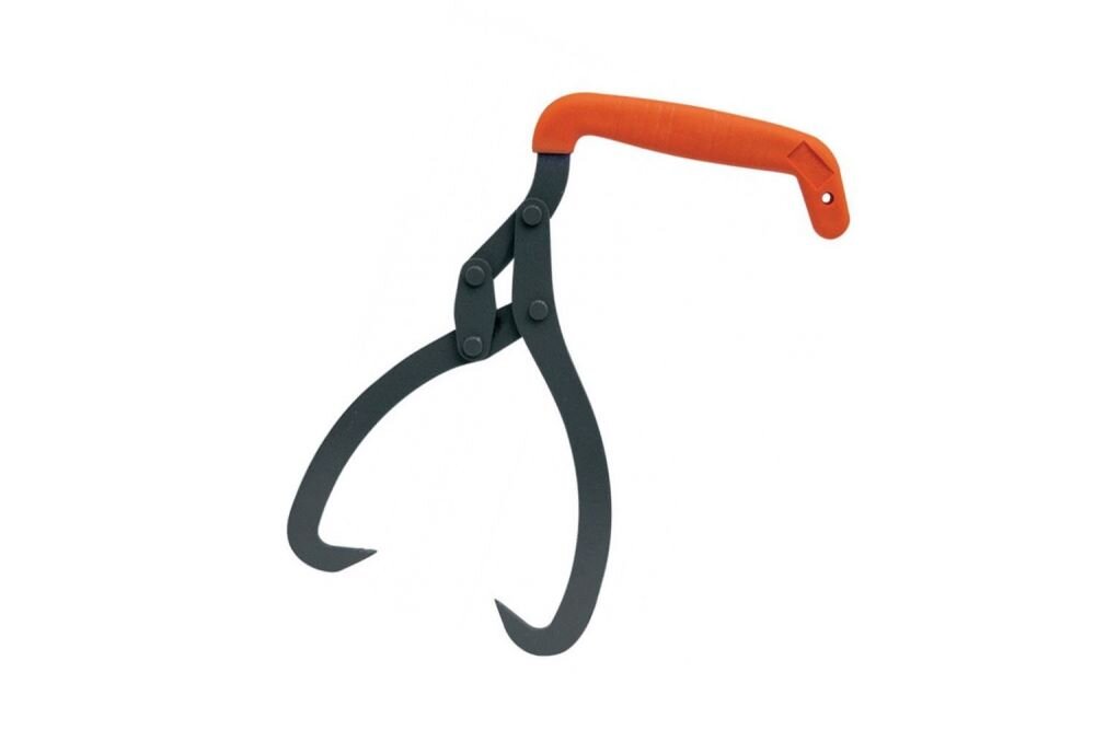 Solidne, kute, stalowe szczypce do manipulacji kłodami. Jedna szczęka wyposażona w antypoślizgowy uchwyt z tworzywa sztucznego do toczenia. Rękojeść z gumy termoplastycznej.