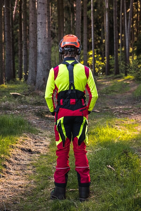 Wytrzymałe, elastyczne szelki zapinane na guziki lub metalowe klamry.
