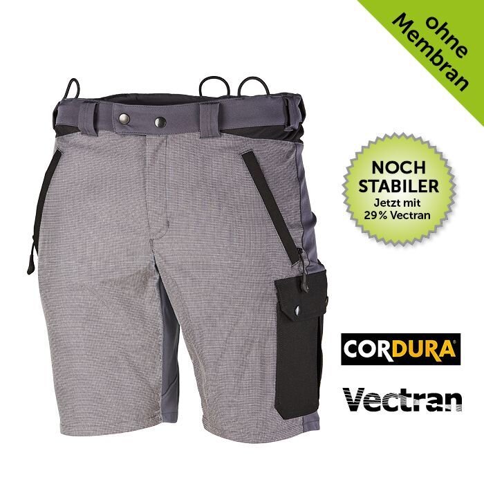 Spodenki robocze X-treme Work mają ergonomiczny krój, są niezwykle elastyczne dzięki czterokierunkowemu rozciągliwemu materiałowi i bardzo wytrzymałe dzięki zastosowanemu poliamidowi Cordura®.