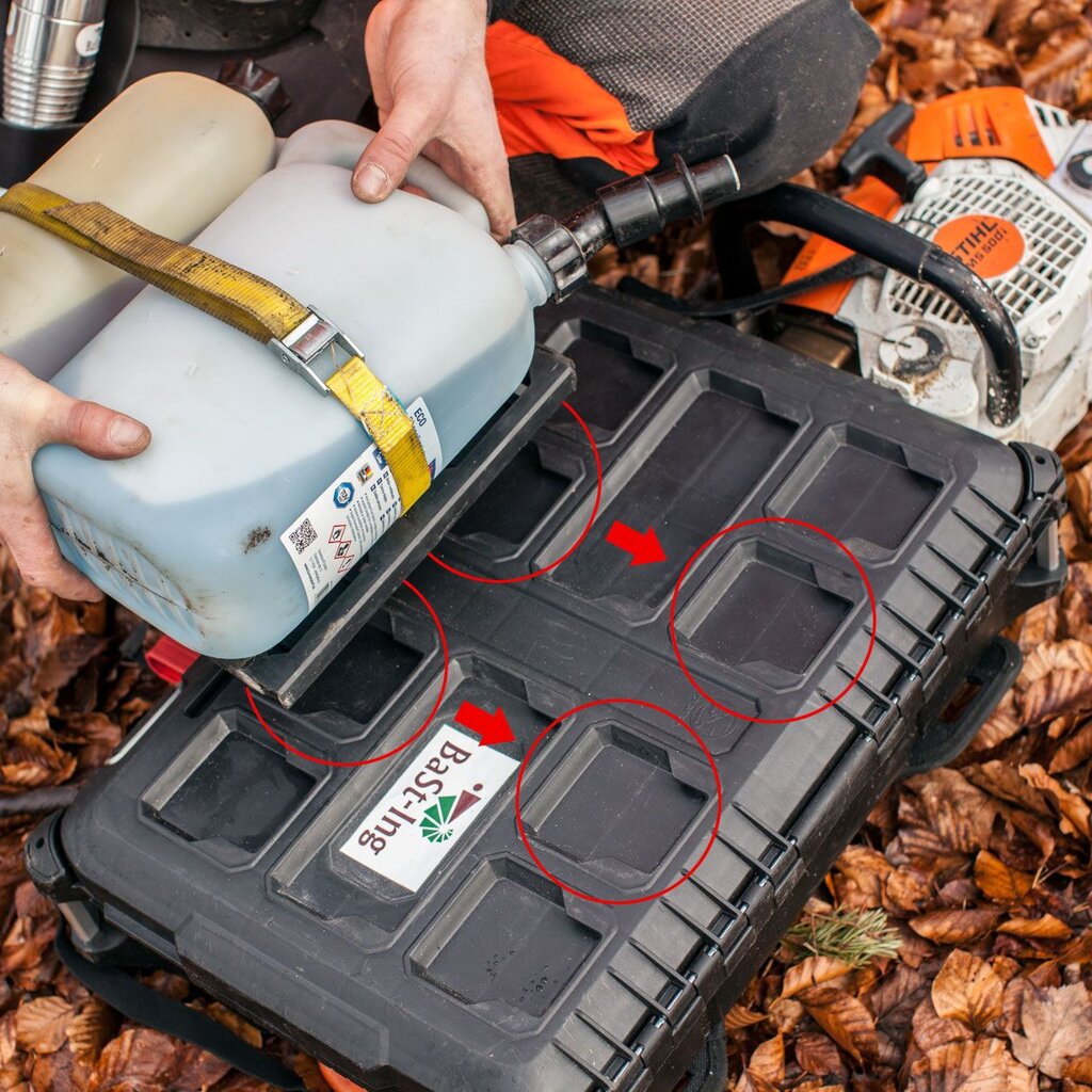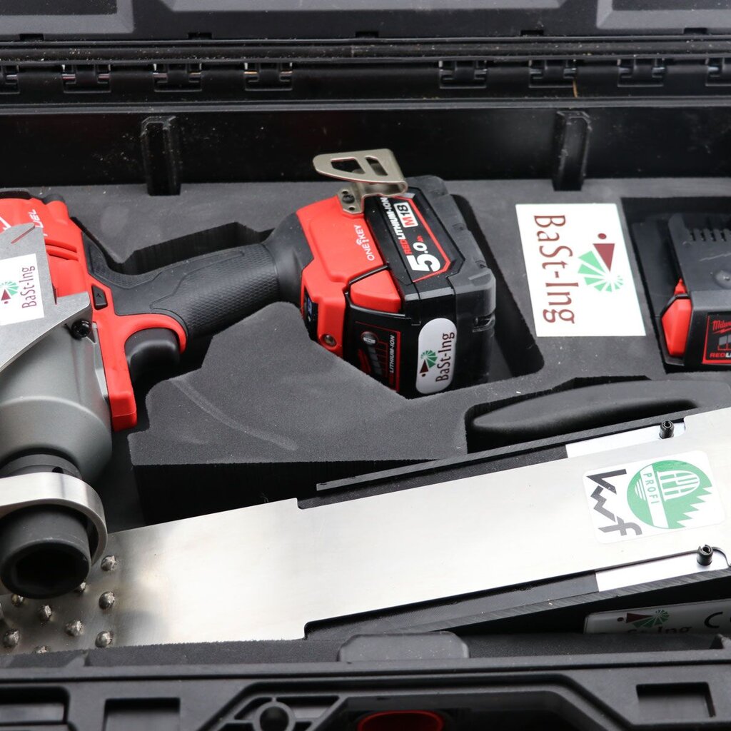 Podstawą jest wytrzymała i wodoodporna obudowa do użytku na zewnątrz ze specjalnie wykonaną wkładką na ValFast (kompakt), klucz udarowy i zapasowy akumulator.